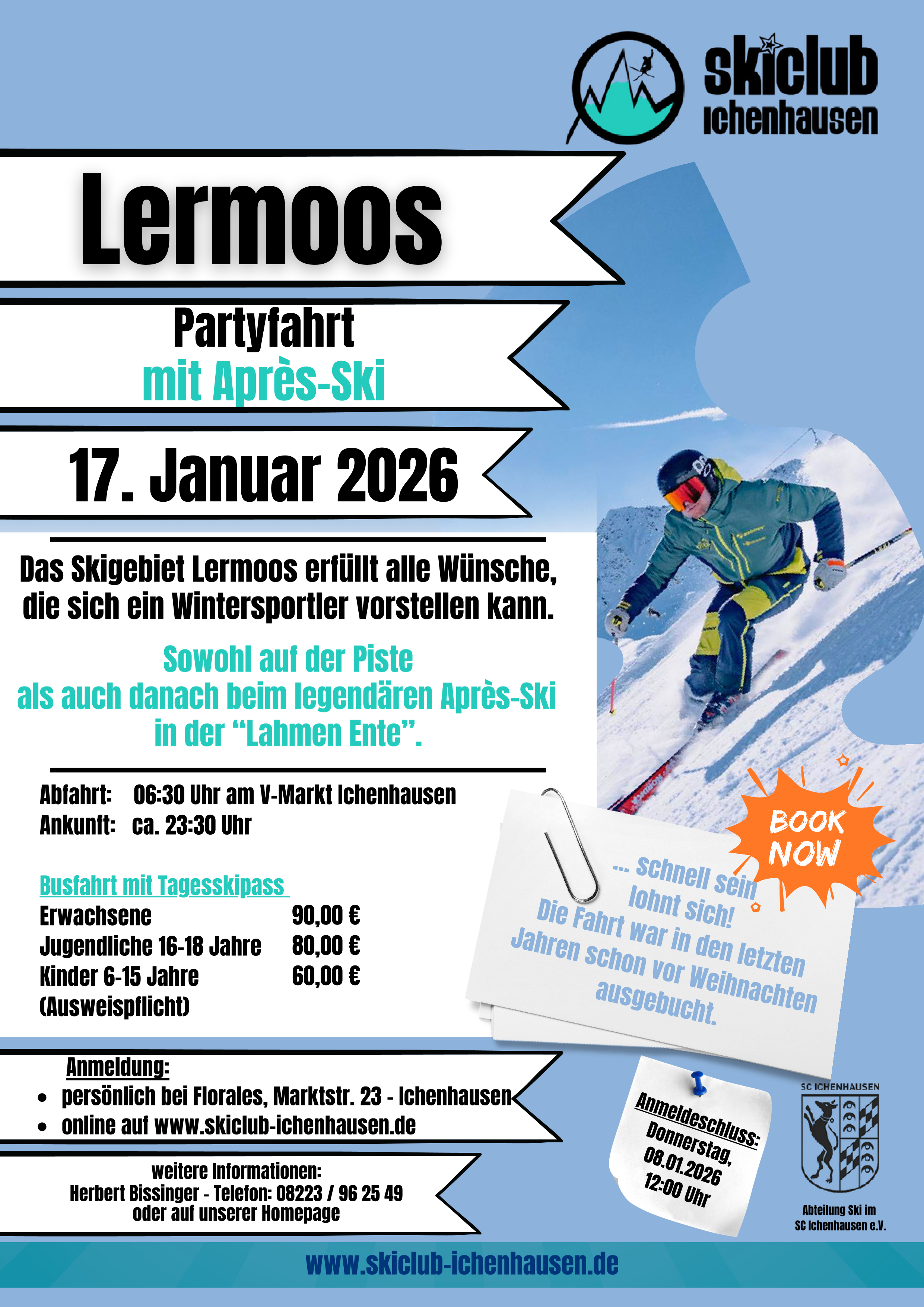 Am 17.01.2026 war es endlich wieder so weit: Unsere legendäre Partyfahrt nach Lermoos stand auf dem Programm! Mit einem bis auf den letzten Platz gefüllten Doppelstockbus ging es früh los Richtung Tirol – die Vorfreude an Bord war mindestens genauso groß wie die gute Laune.