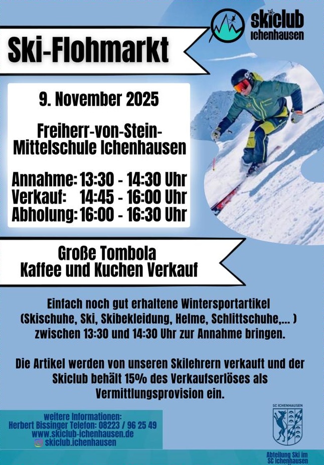 Da der Winter in den Startlöchern steht, bietet der Skiclub Ichenhausen wie alle Jahre wieder einen Skiflohmarkt an.